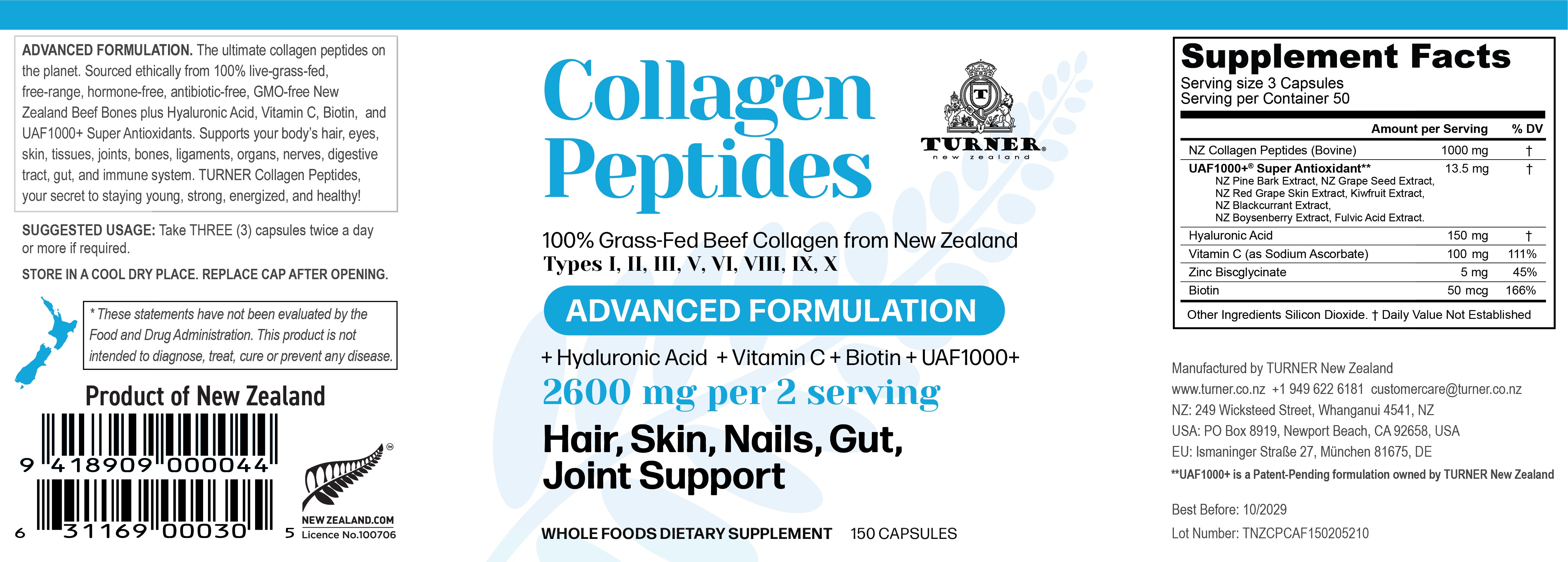TURNER Collagen Peptides – Advanced Formulation (150 Capsules)