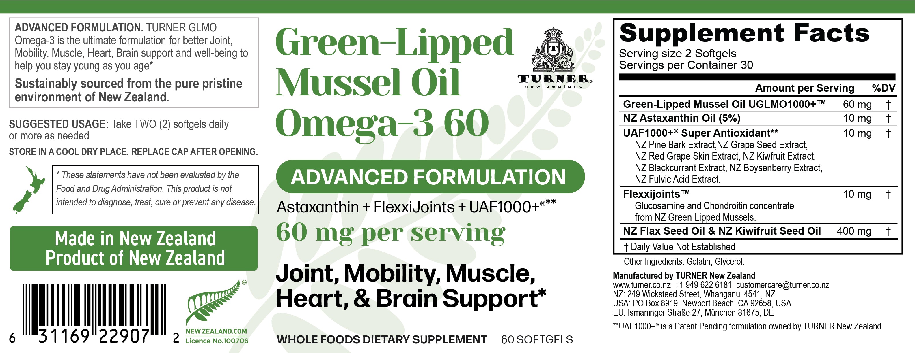 TURNER Green-Lipped Mussel Oil provides these vital EPA and DHA fatty acids in their phospholipid form, naturally bound for superior absorption and cellular integration—making it far more bioavailable and effective than standard fish or plant oils.