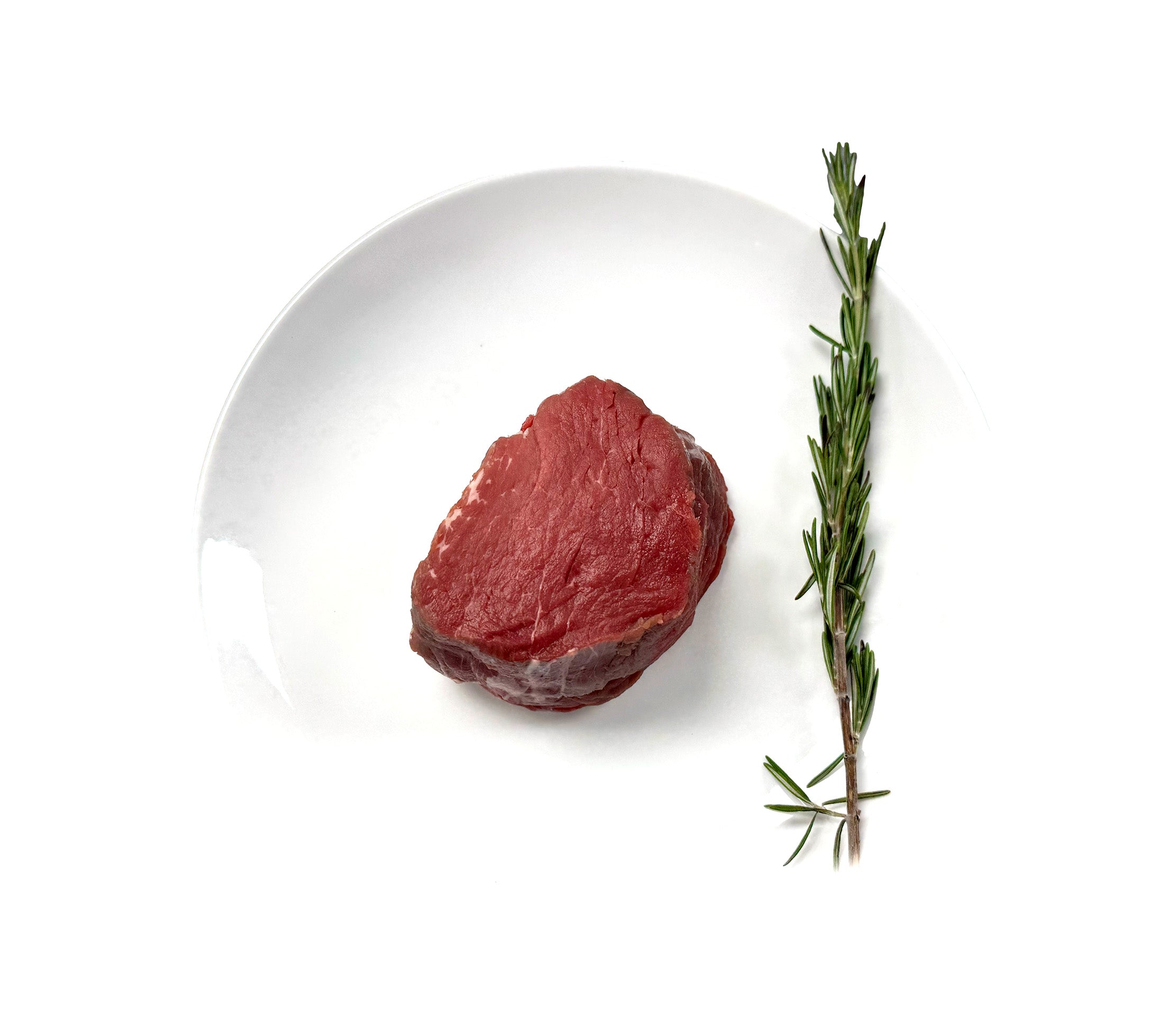 The full tenderloin, or fillet, is removed in one piece from the full rump and loin and completely trimmed of fat.