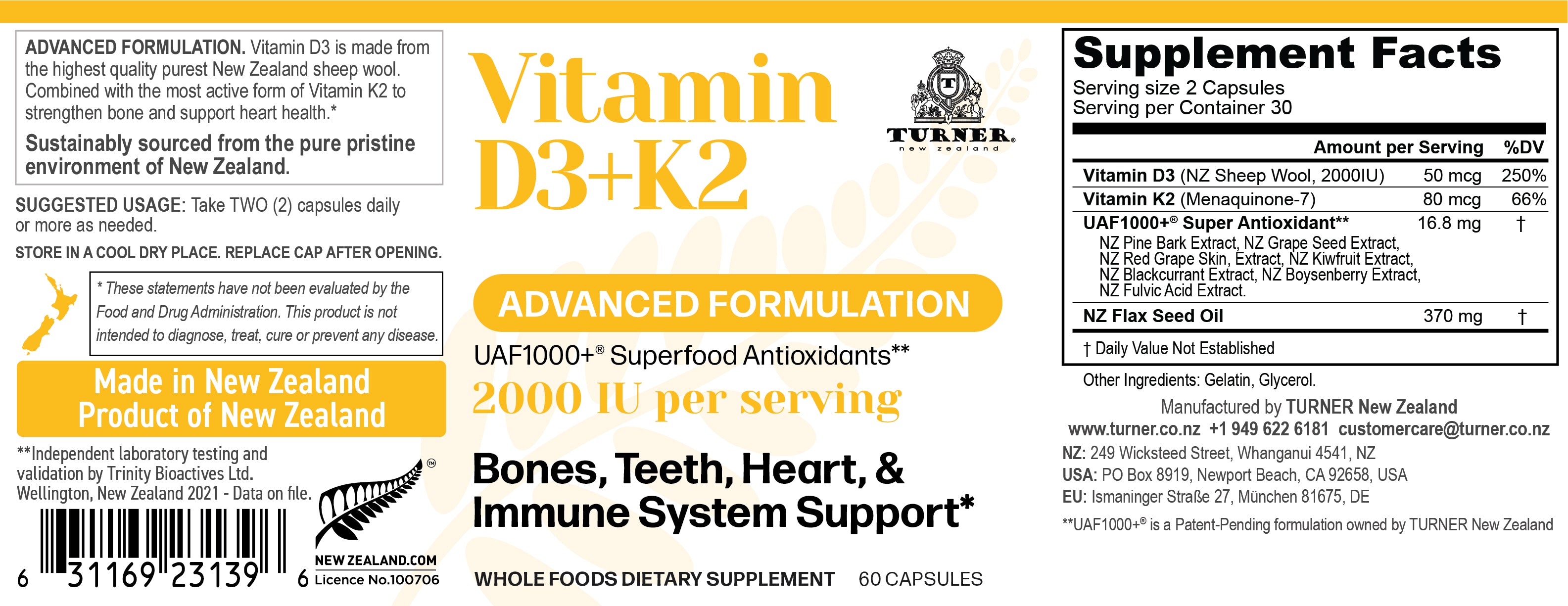 - 2000 IU Vitamin D3 from New Zealand Sheep's Wool Lanolin